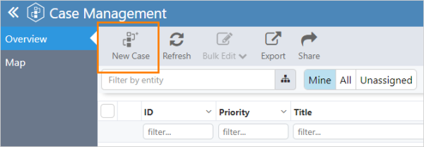 Click the New Case button to open the Create New Case dialog.