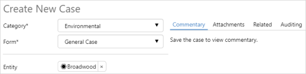 Create New Case dialog: