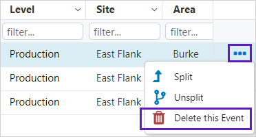 Note: The New Event button is only available after a site and area are selected.