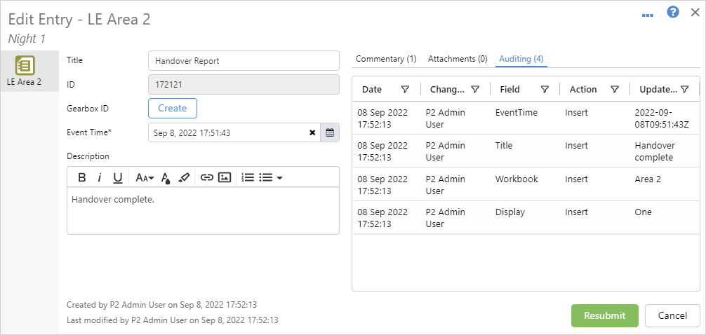 Entries are a record of cases, events or activities and can be added, edited and in A-Plus and Shift Log, deleted.