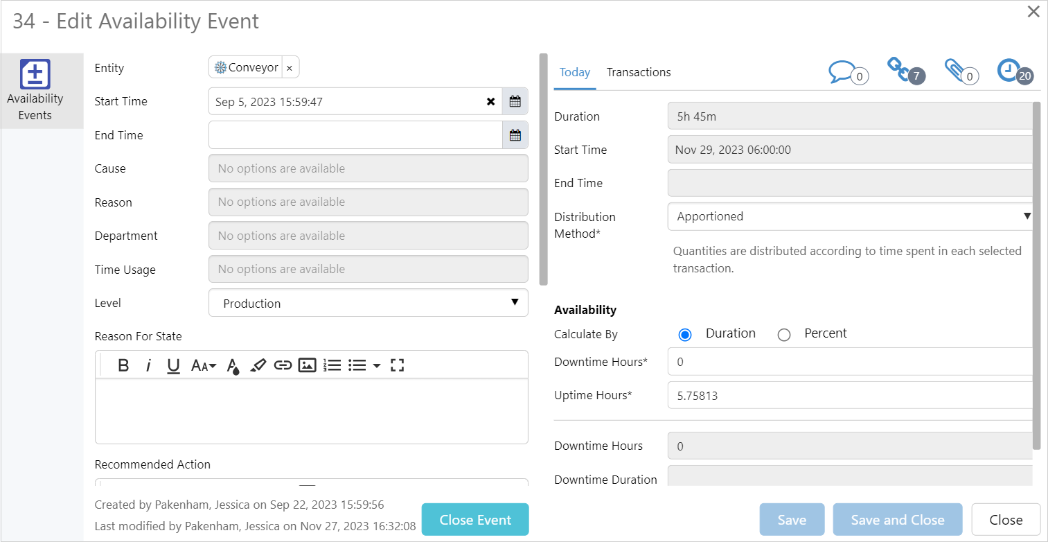 After selecting a site and area the New Event button is displayed. Click New Event to open the Create Event dialog.