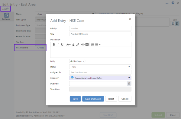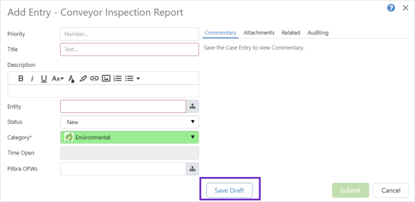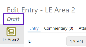 Draft entries are created to save information that may be incomplete, or not ready for submission. They can be reopened, edited and submitted at a later time.