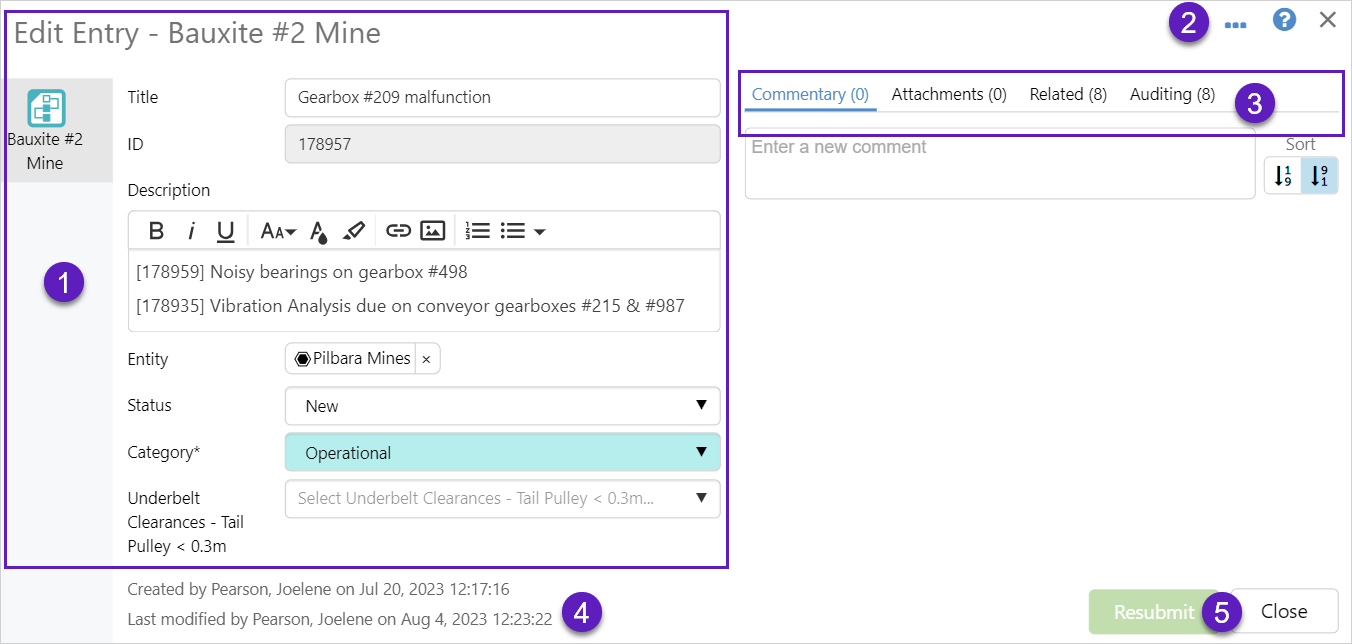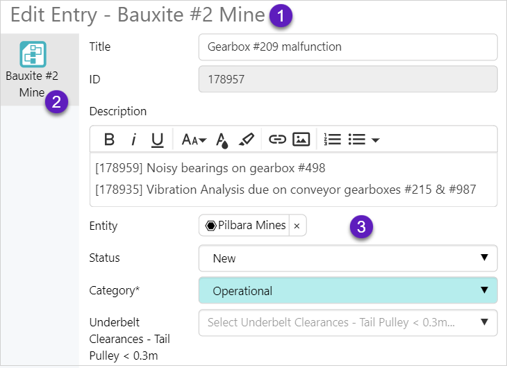 | 1. Entry Form | Used to enter and edit entry details. The fields on an entry form will vary between forms and form types, and each type of form will contain a different set of mandatory fields. | ||||||