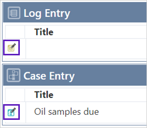 2.   Form Icons The icons indicate the type of entry, and the label is either the entry type or the form name.