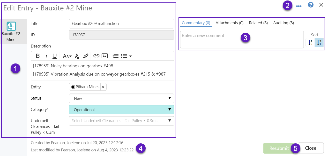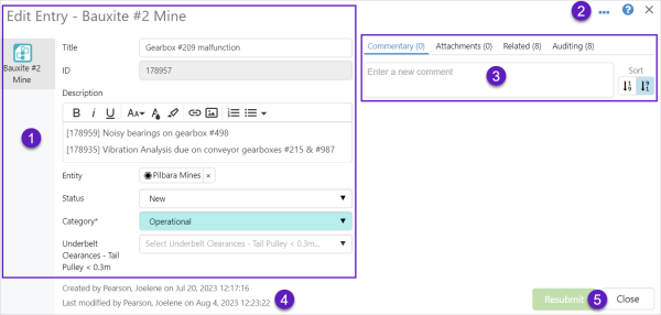 Deleting an entry will remove it from the system, along with any comments and attachments for that entry.