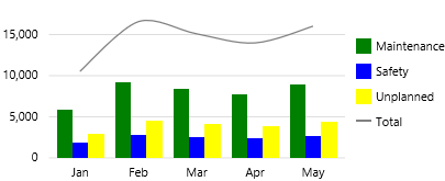 This is a good chart for values that make sense as cumulative amounts, such as the downtime hours shown in the screenshot. |