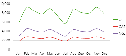 Grid lines (when supplied) make it easier to estimate values above the various chart series. |