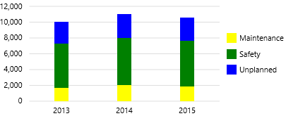 This chart shows separate bars for the different downtime reasons, with a line showing the total. |