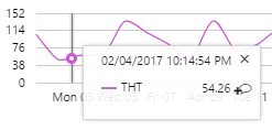 Sometimes, a chart may be configured to allow the user to add a comment. Comments are observations made at a point in time that users can associate with a particular tag, entity, or entity attribute.