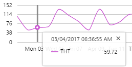 If enabled, you can often click on a continuous chart to see a hairline. A hairline shows the value of a data point at the x axis position that you click. The hairline displays a timestamp and the value of each series on the chart.