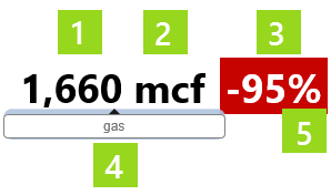 The background is red if the percentage of target is an undesirable outcome. In this example, gas is under target which is an undesirable outcome. For a label representing water, actual values above target would be undesirable; in that case, the label would be configured to show a red background for positive percentage figures.