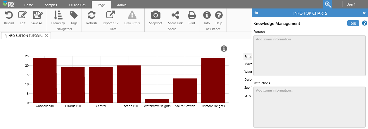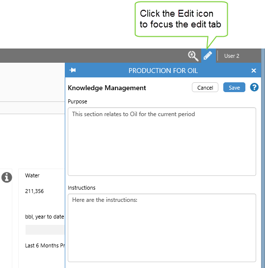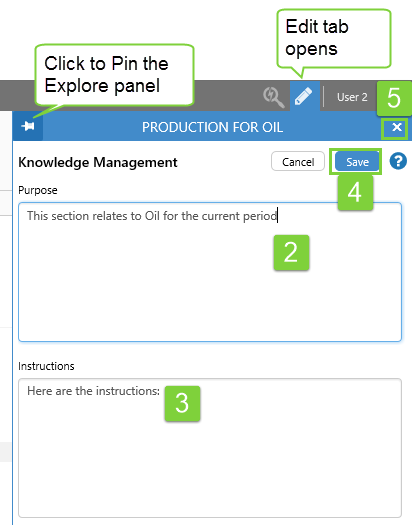When you click an Info Button, the Explore panel opens to show Knowledge Management relating to a control, or area of the page. This initially holds no information, although in the example below, the Knowledge Management fields have already been updated.