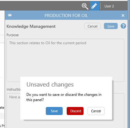 If you are editing the Knowledge Management fields for an Info Button, and then open the Explore panel for another item (for example, you click on a different Info Button), you can still manage your unsaved changes. This feature is useful if you want to check on some background or get further information, before saving your changes.