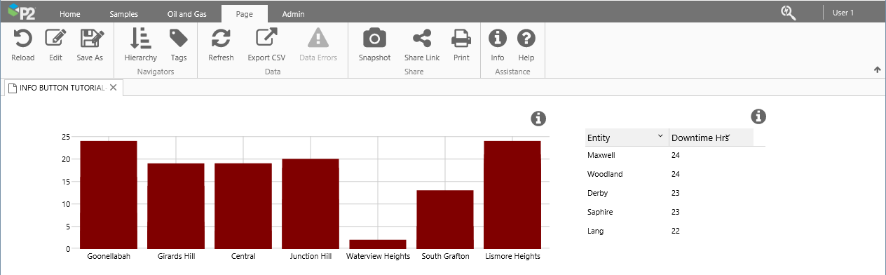 Each Info Button on a page has been configured, by the page designer, to have a title and a context key.
