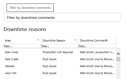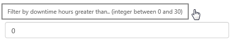 In this example, the user types a number to limit the entities shown in the chart. Only those whose total downtime hours for the period are greater than the user-captured Text Input number appear in the chart.