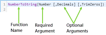 | Required | The argument is mandatory. If not supplied, the function call will return an error. |
