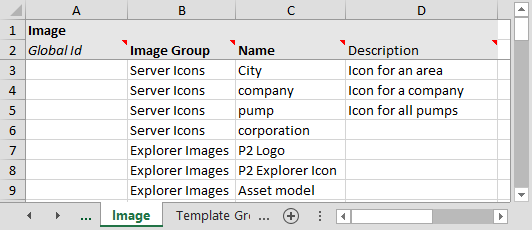 | Image Group | Image | Required by the 'Name' column on the 'Image Group' tab. |