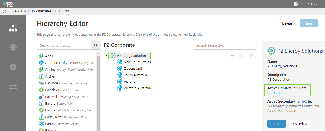 Now, whenever you see an entity with this template applied as the primary template, you will see this icon in the Hierarchy and Entity Overview pages in Server Management, as well as in the Hierarchy Navigator in IFS OI Explorer.