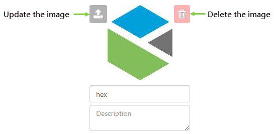 After you have uploaded an image, you can update or delete it by hovering over the image, and clicking the relevant icon.