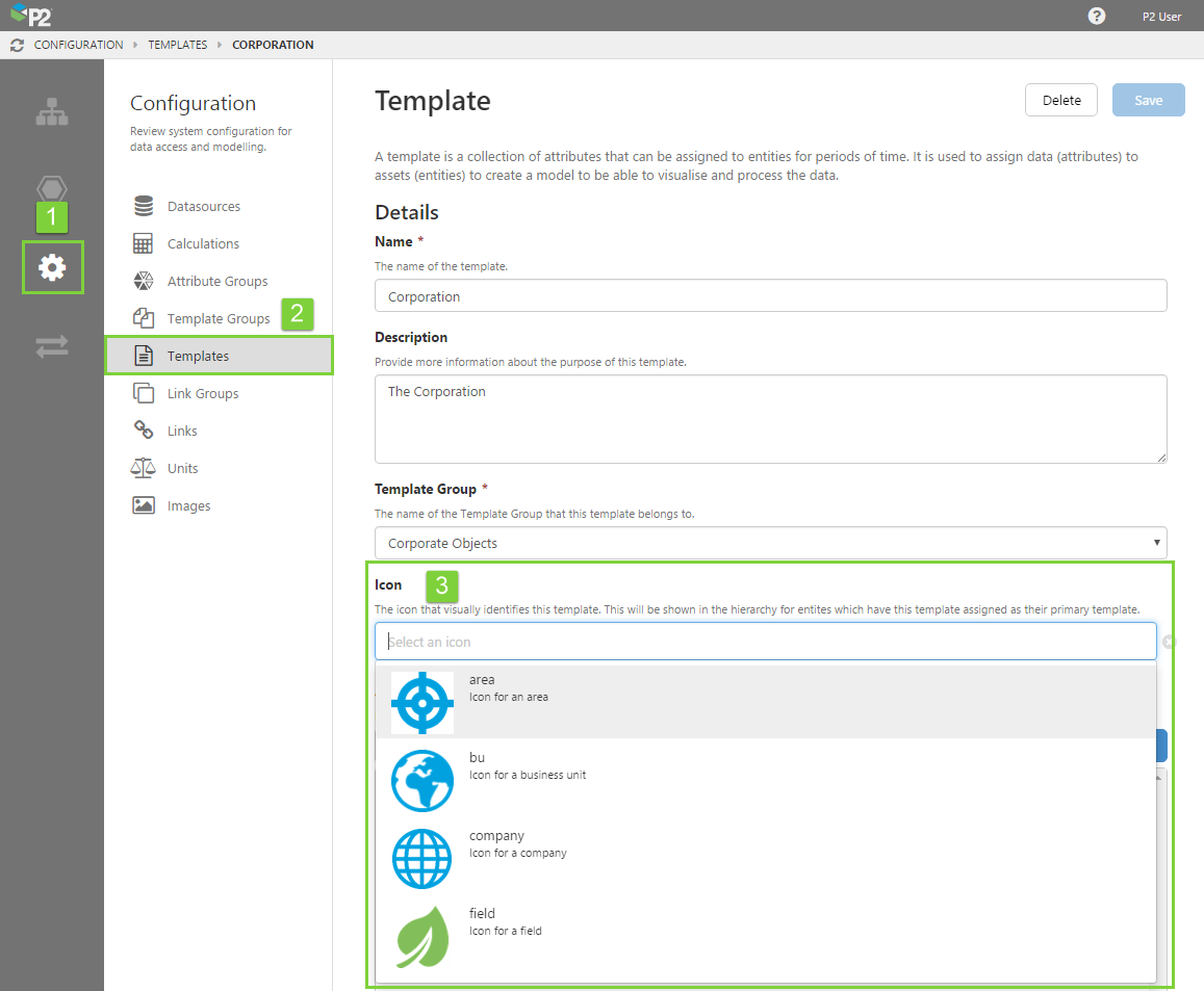 3. Select a template from the list and edit it. In the Icon field, select the icon you want from the drop-down list, and click Save when you have finished.