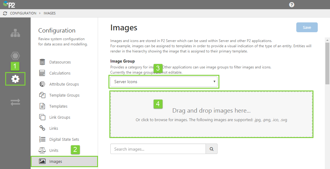 Icons and other images are a useful tool to help people identify and visualise information. P2 Server stores icons used in hierarchies and images for P2 Explorer.