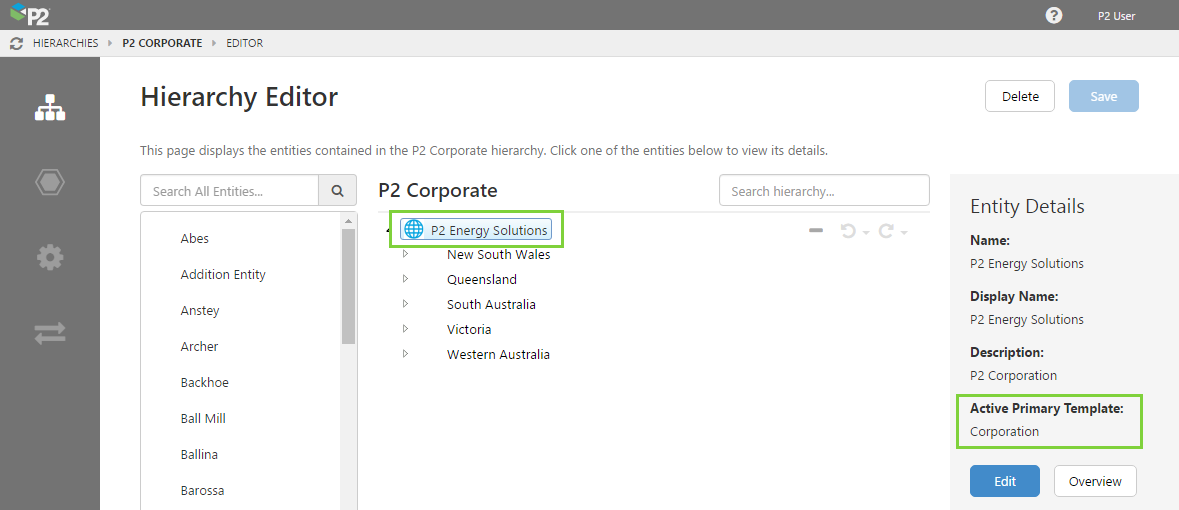 Now, whenever you see an entity with this template applied as the primary template, you will see this icon in the Hierarchy and Entity Overview pages in Server Management, as well as in the Hierarchy Navigator in P2 Explorer.