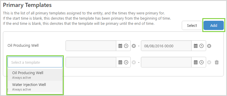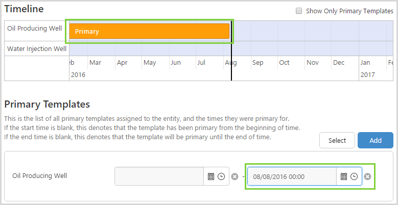 1. First, you need to assign an end date to the current primary template. In the Primary Templates section, click the calendar
