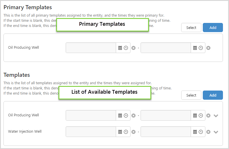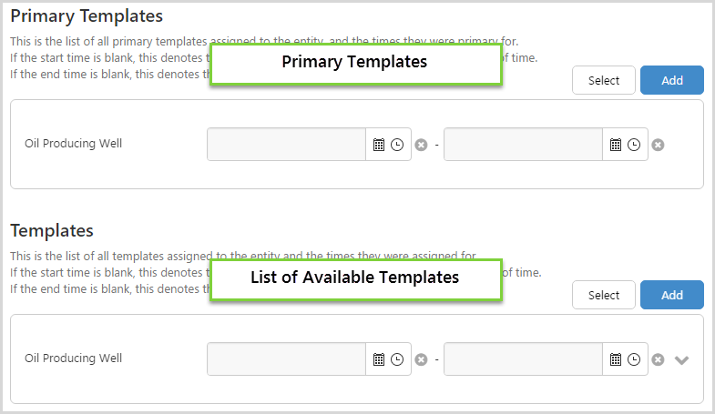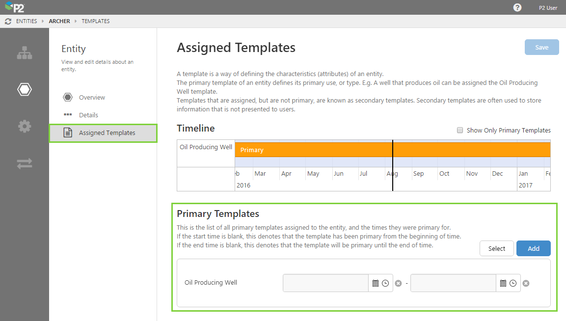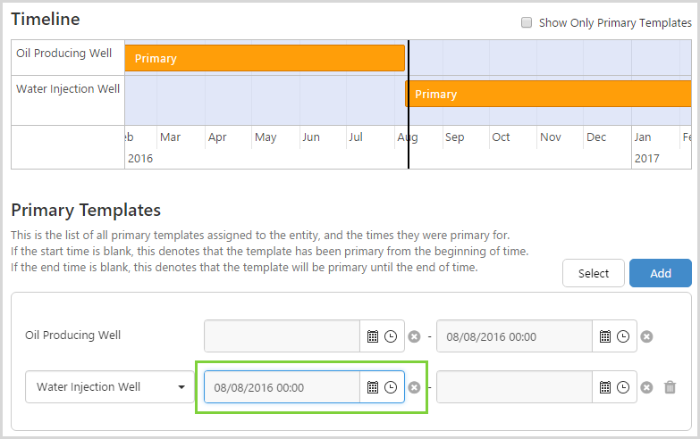 Over the life cycle of an asset, it's purpose or type may change, and different information may be required for the asset. Changing the primary template of an entity allows you to manage these changing requirements.