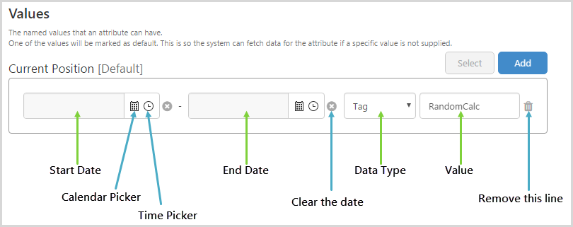 An attribute can have a number of values, and they can be of different types. For example, for one date range you may want the attribute to have a fixed value and for another date range you may want the attribute to get its value from a tag.