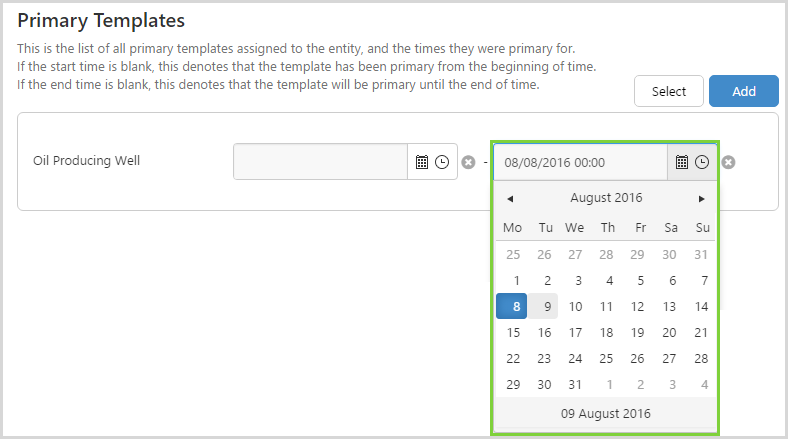icon to select a new start date. This will usually be the same date as your end date for the previously used primary template.