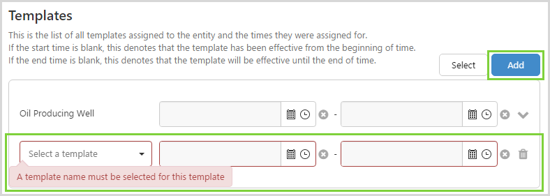 - If the template you want to use is NOT in the list of templates for the entity, you will first need to add the template.