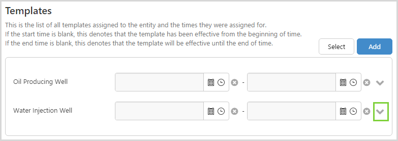 Alternatively, you can click the name of the entity, and then click Assigned Templates.