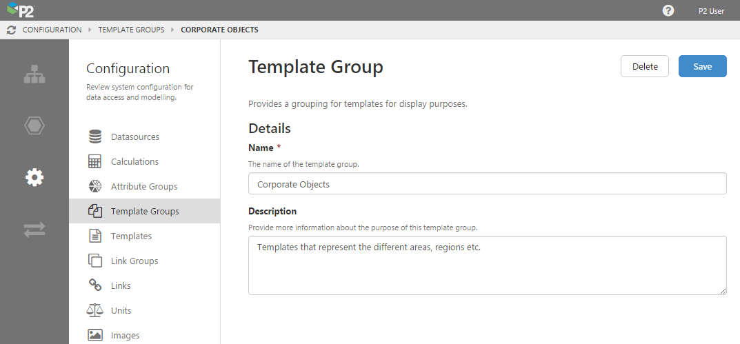 4. Give the group a name and a description. Note that the name cannot contain any reserved characters. For the description, it’s often useful to provide a broader explanation of the purpose of the template and how it will be used.