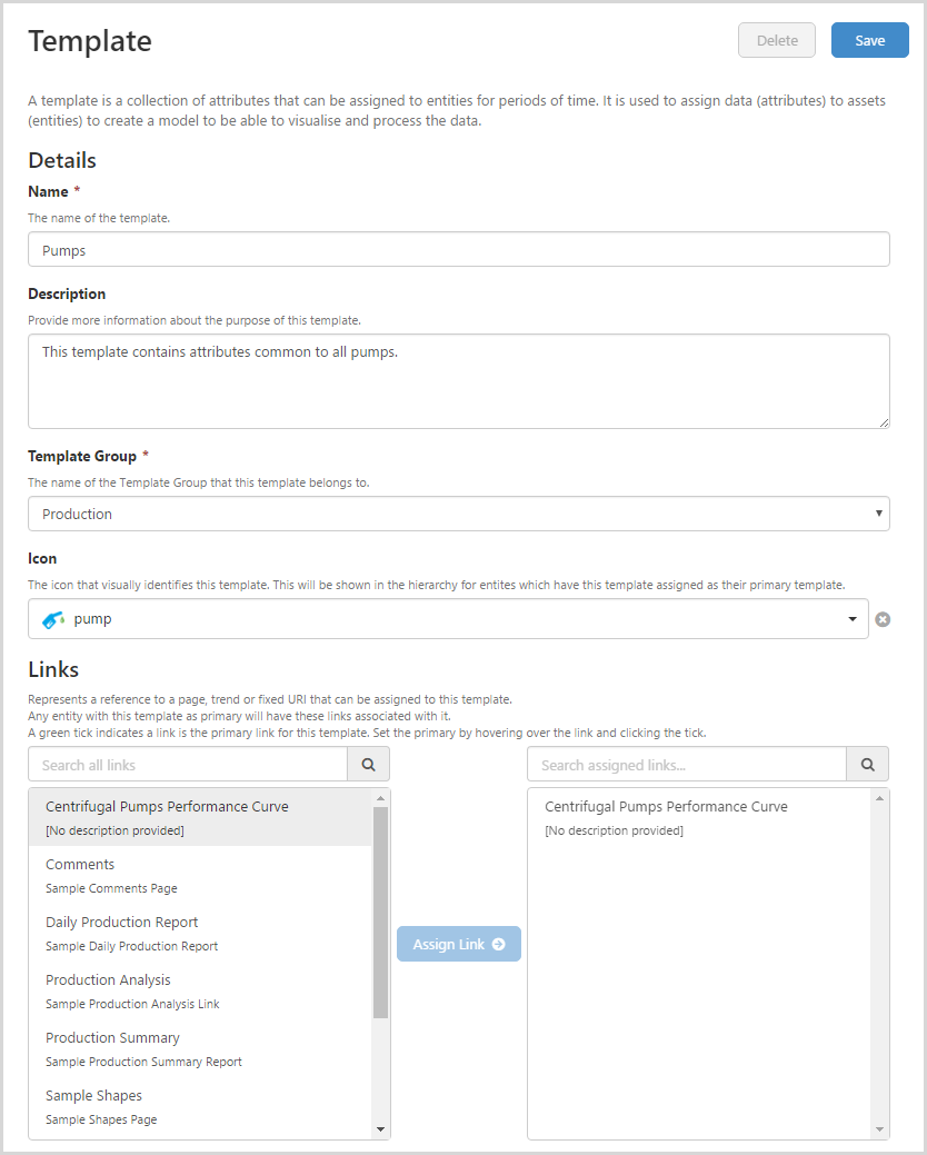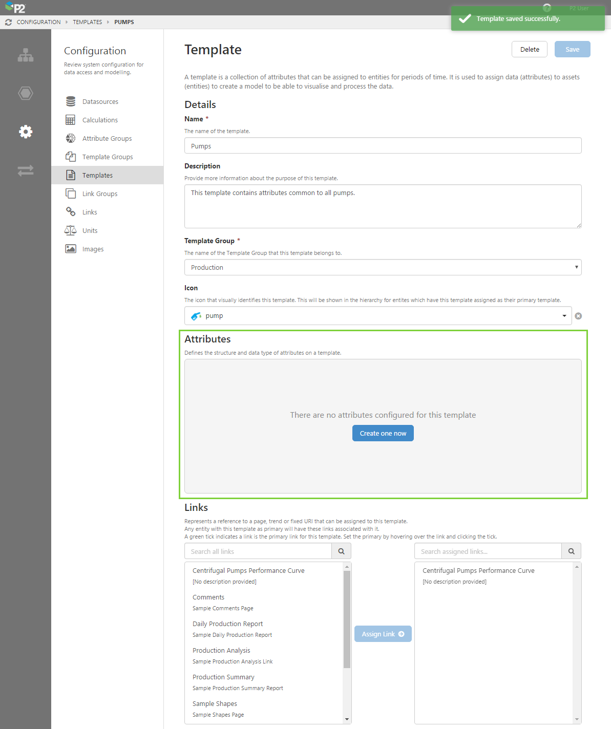 Done! You now have a template with assigned attributes, which you can now assign to an entity.
