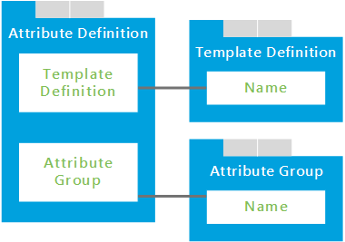 The Attribute Definition tab has dependencies with the following tabs: Link Group, Link, Template Group, Template Definition, and Attribute Group.