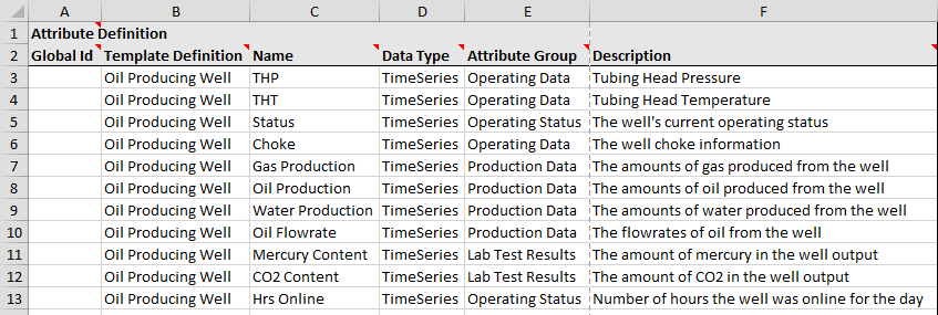 You can see that the Oil Producing Well template has been assigned the following attributes: