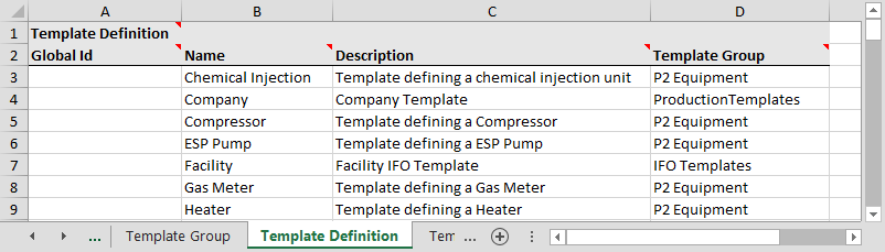 A template in P2 Server is a way of defining the attributes of an entity. All entities that are assigned a template take on the attributes of that template. For example, all Oil Producing Well templates will have attributes like Tubing Head Pressure, Tubing Head Temperature, and Choke Position; whereas Water Injection Wells might have Injection Pressure, Annulus Pressure, and Water Flowrate.