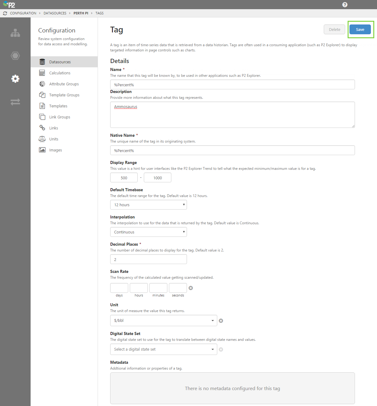 You can also use the Tag Property tab, if you need to edit any of the Tag Metadata. Tag metadata is not editable from within P2 Server Management.