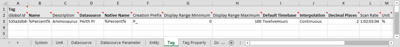 The Tag tab is directly dependent on 3 other tabs; Datasource, Unit and Digital State Set; because columns on the Tag tab directly reference columns on those tabs.