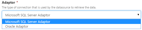The adaptor pool hosts a number of adaptors (datasource connections), which can be called upon to retrieve data. You need to specify the minimum and maximum adaptor pool size by moving the sliders left and right.