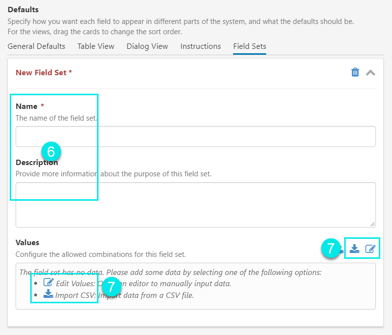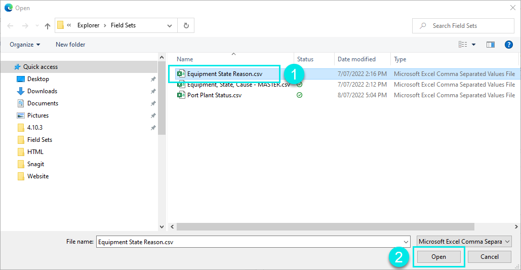 Field sets can be exported to a csv file by selecting the Export to CSV