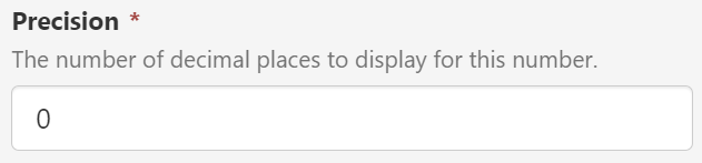 A number field in which users can only enter a whole number. There are no additional options to choose for Integer values.