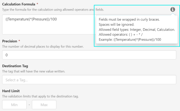| Hard Limit | Minimum and maximum validation limits can be set for the destination tag. |