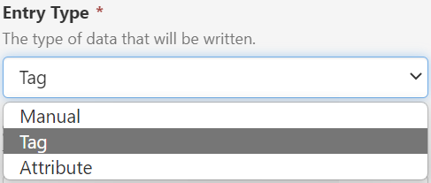 Data can be entered manually, or it can come from a Tag or Attribute.