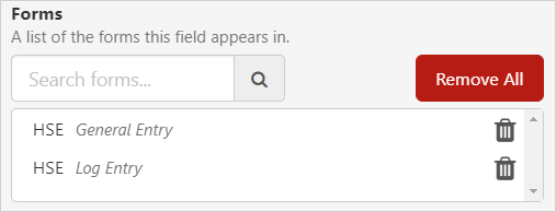 The forms a field has been assigned to can be a found at the bottom of the field configuration.