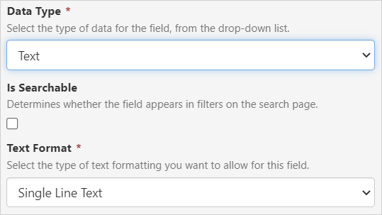 - The option of sorting the search results by the field. Fields of type text, multiselect list, and datetime cannot be used to sort the results.