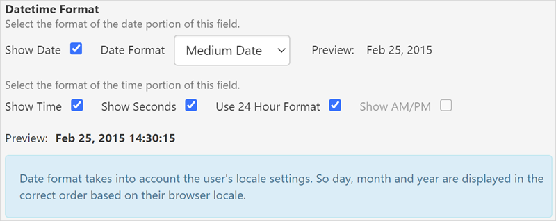 Note: the Date format takes into account the user's locale settings. So day, month and year are displayed in the correct order based on their browser locale.
