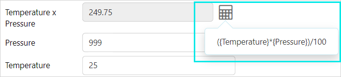 The calculation is created in Server Management, and the result is displayed in the dialog and the table. Neither the calculation or its result are editable in the dialog.