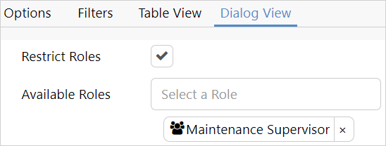 In the dialog, the user field can be filtered by typing part of a person’s name. The field can also be configured to include roles.