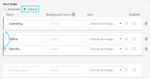 5. To specify a sort order, select Manual, and drag and drop the item cards so that they are in the desired order.